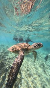 翌日は、自由行動で、皆様全島に散らばって、それぞれ満喫しておられましたが、わが社の乙姫様達もシュノーケリングで海亀に遭遇して喜んでおりました。